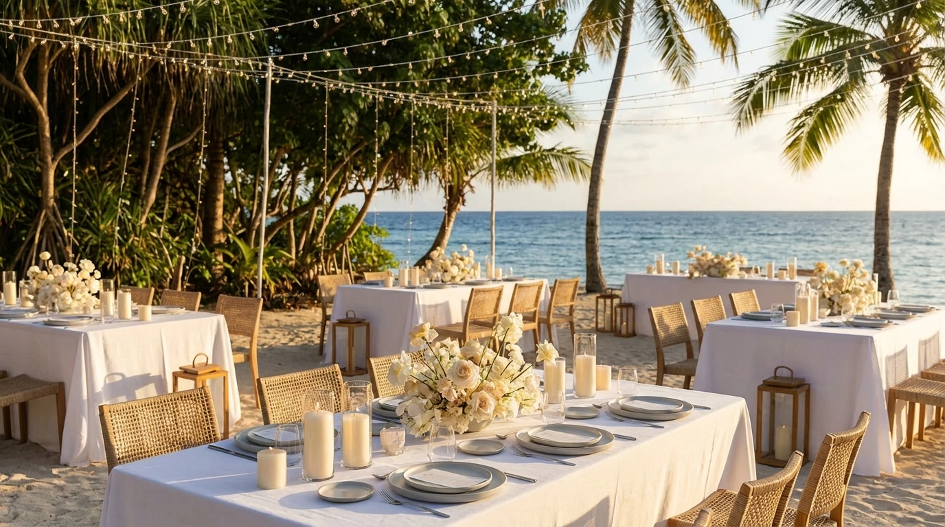 Each setting offers unique opportunities for sophisticated design and memorable guest experiences—from intimate beachfront ceremonies to grand celebrations in European manor houses, we bring our refined aesthetic and expert coordination to any destination you envision.